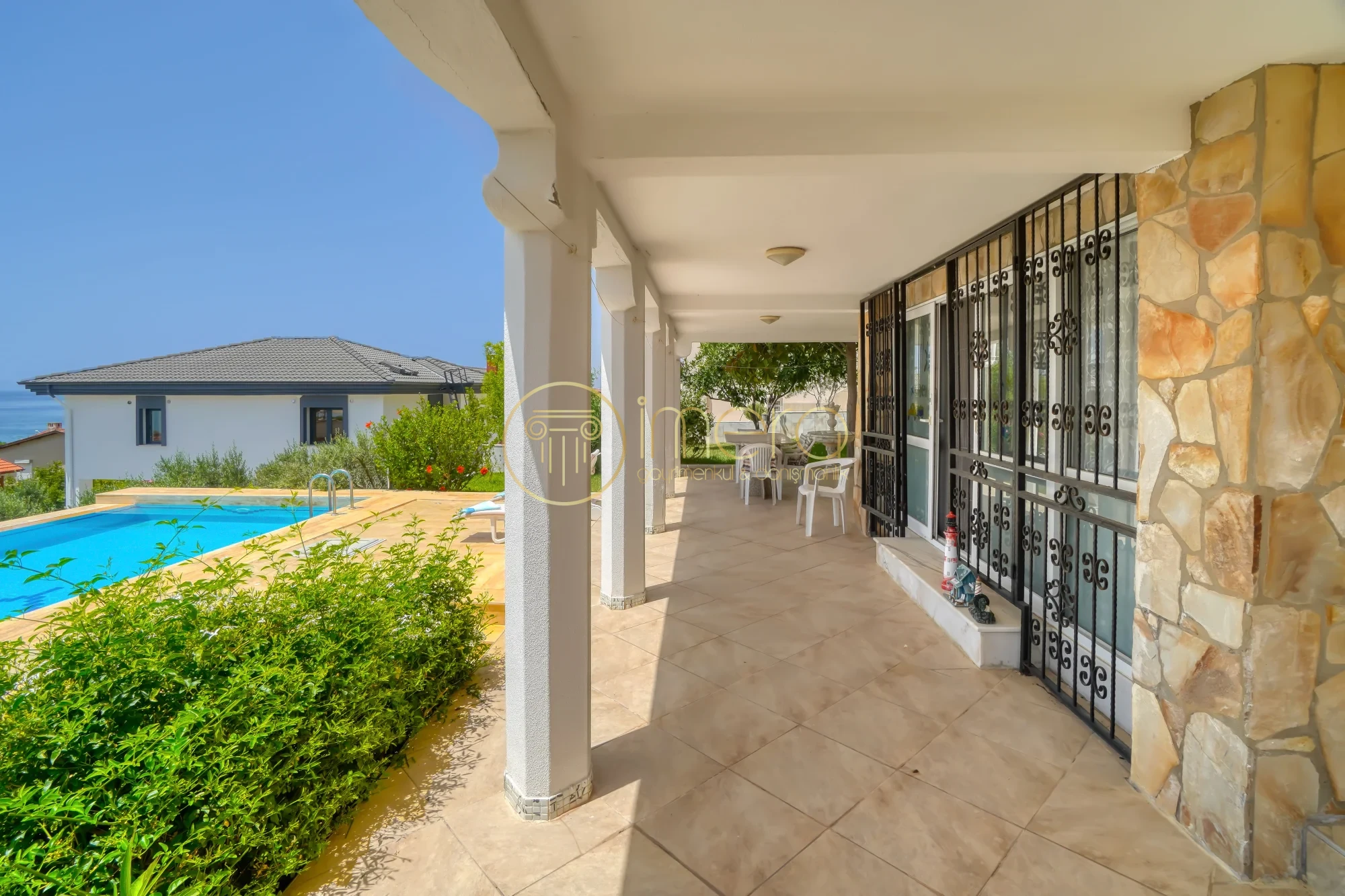 Müstakil havuz ve geniş güneşlenme terası